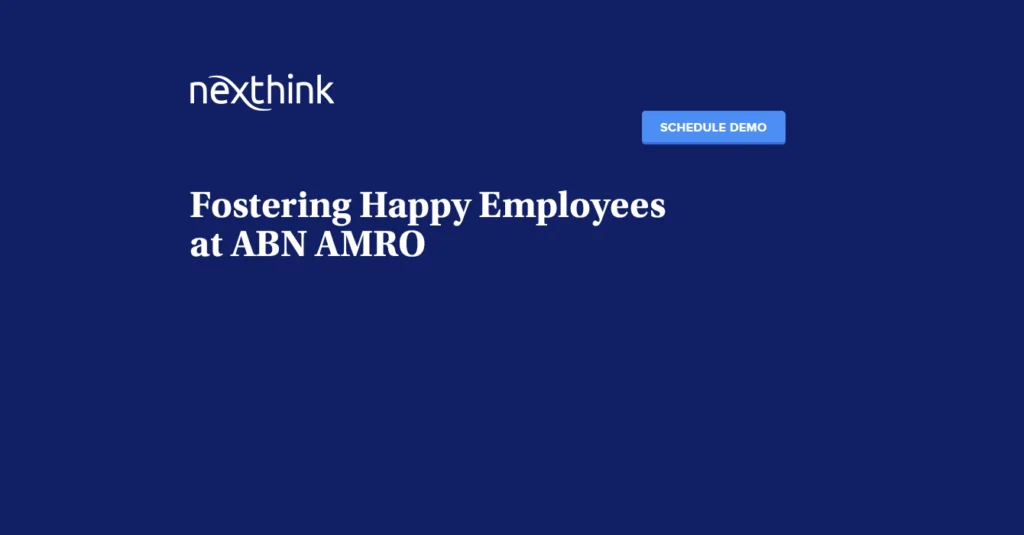 ABN AMRO understands the valu e of happy employees, and hav e put in place strat egies to promote the seamless technology experience that employees expect. Because happy employees lead to happy customers. Watch now to learn more.